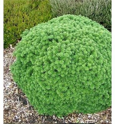 An absolutely adorable compact slow-growing flattened sphere of soft evergreen needles! /BR/BR Lime new growth contrasts nicely against the darker needles. /BR/BR Requires moist but well-drained soil.