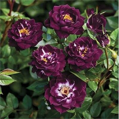 Diamond Eyes� mysterious black-purple blooms with a white eye draw you in to experience a strong clove spice scent that is uncommon in miniature roses. Bred from Wild Blue Yonder, Diamond Eyes forms a rounded, lush green bush that tucks nicely into any landscape. Does well in a container.