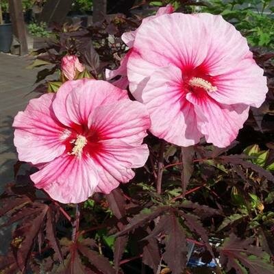 The Hibiscus Carousel�-series features dark purple foliage, an abundance of large flowers, a bushy growth habit and low maintenance.